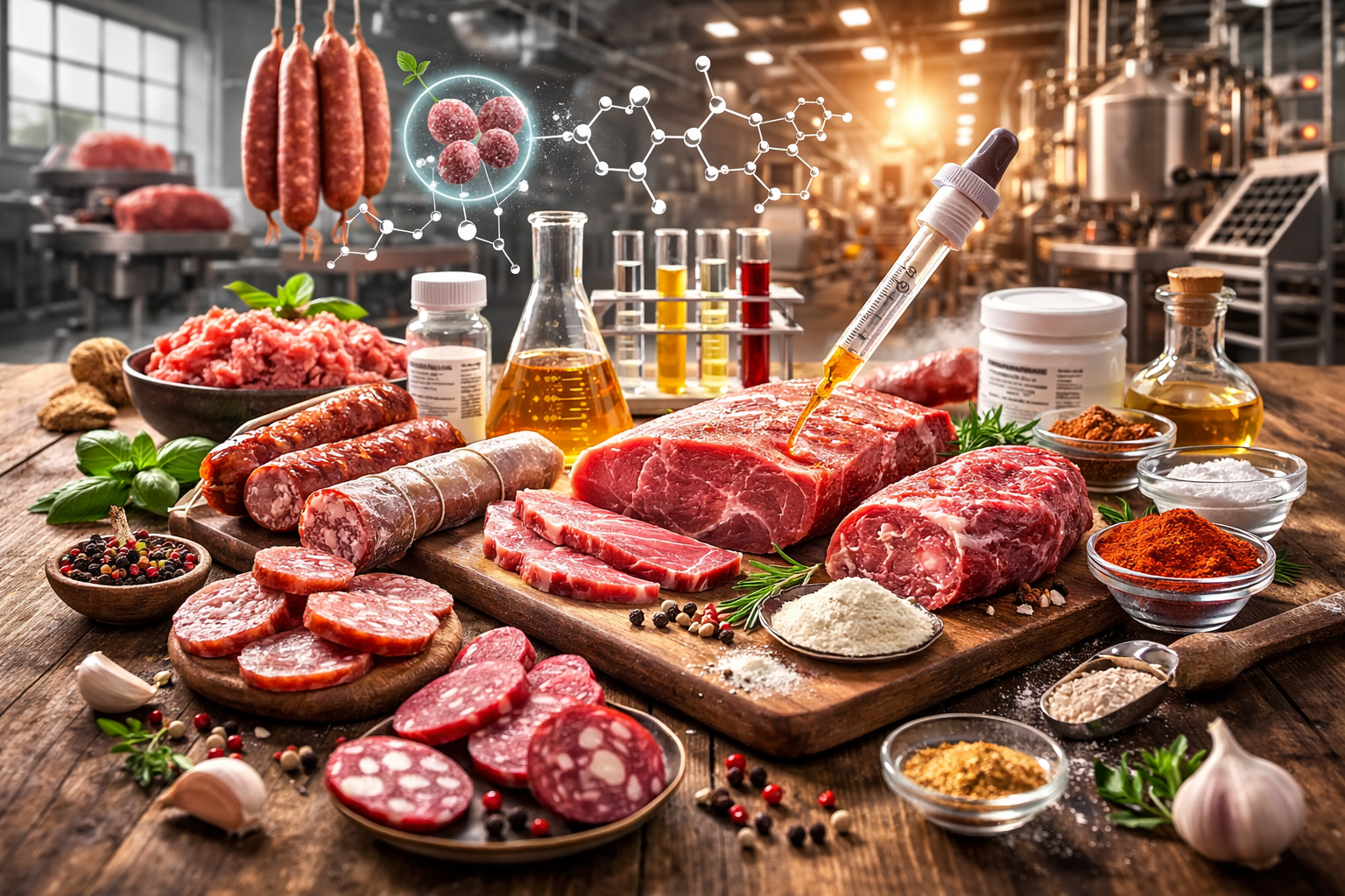 • Создания специализированных продуктов — ферменты используются в производстве прошутто, ферментированных колбас, мясных закусок.